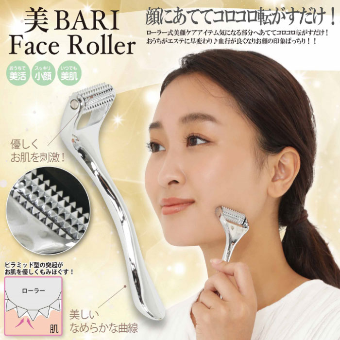 専用ポーチ付き 美顔ローラー 小顔 美肌 シワ 血行 お家でエステ 優しく刺激 ハンドケア デコルテ ボディケア スキンケア ローラー 顔 全身 コロコロ むくみ たるみ 美容 美顔ローラー【美BARIフェイスローラー】